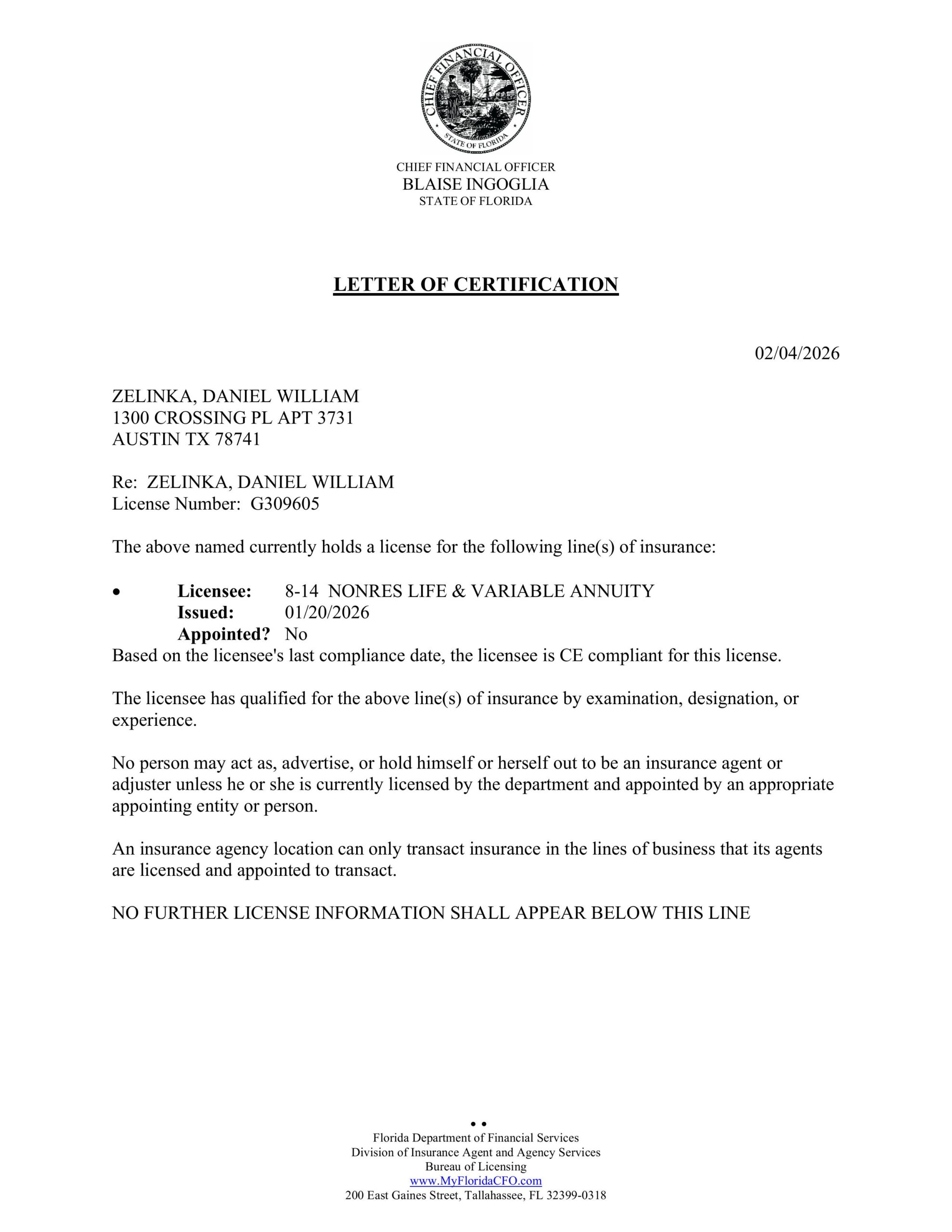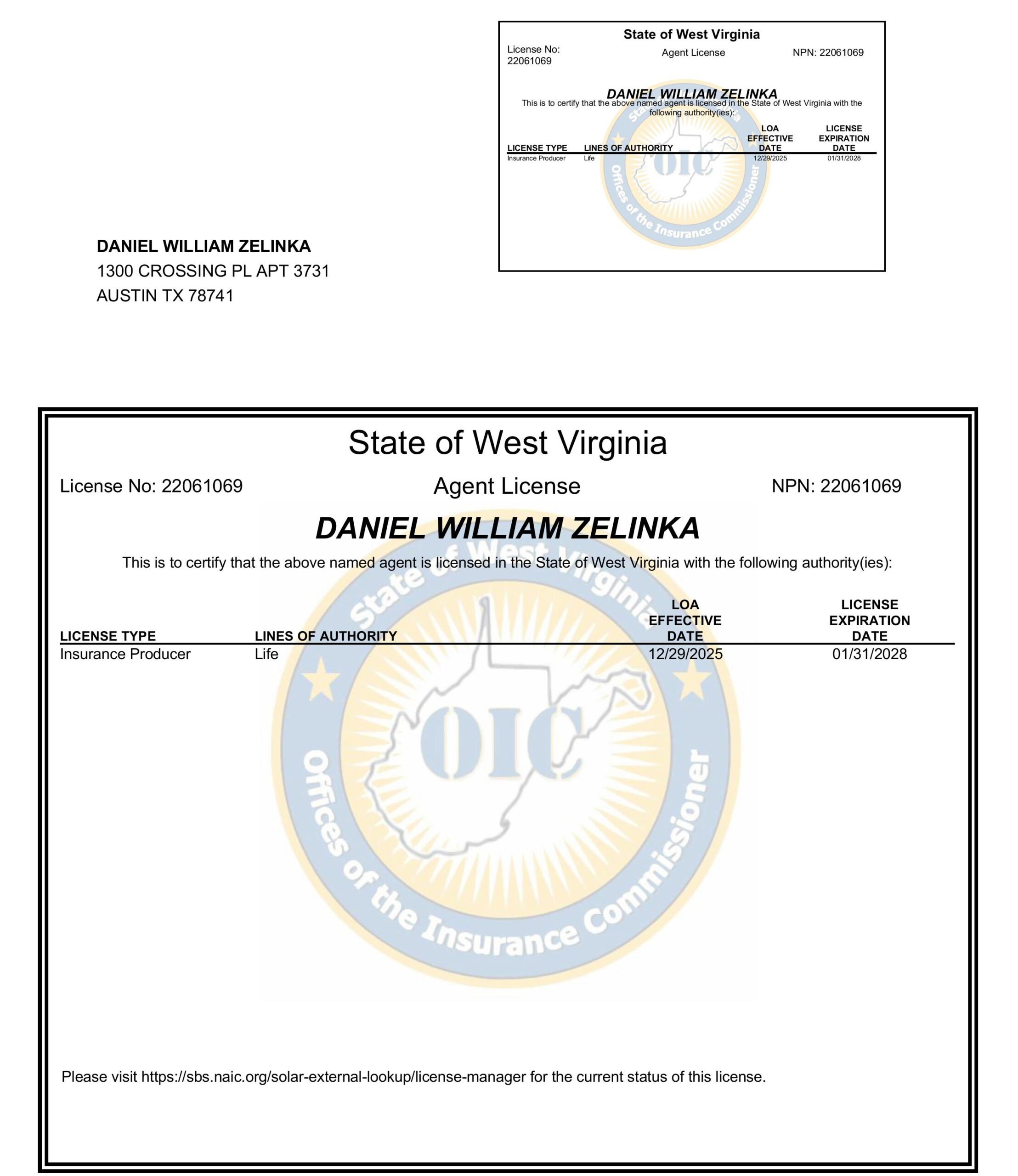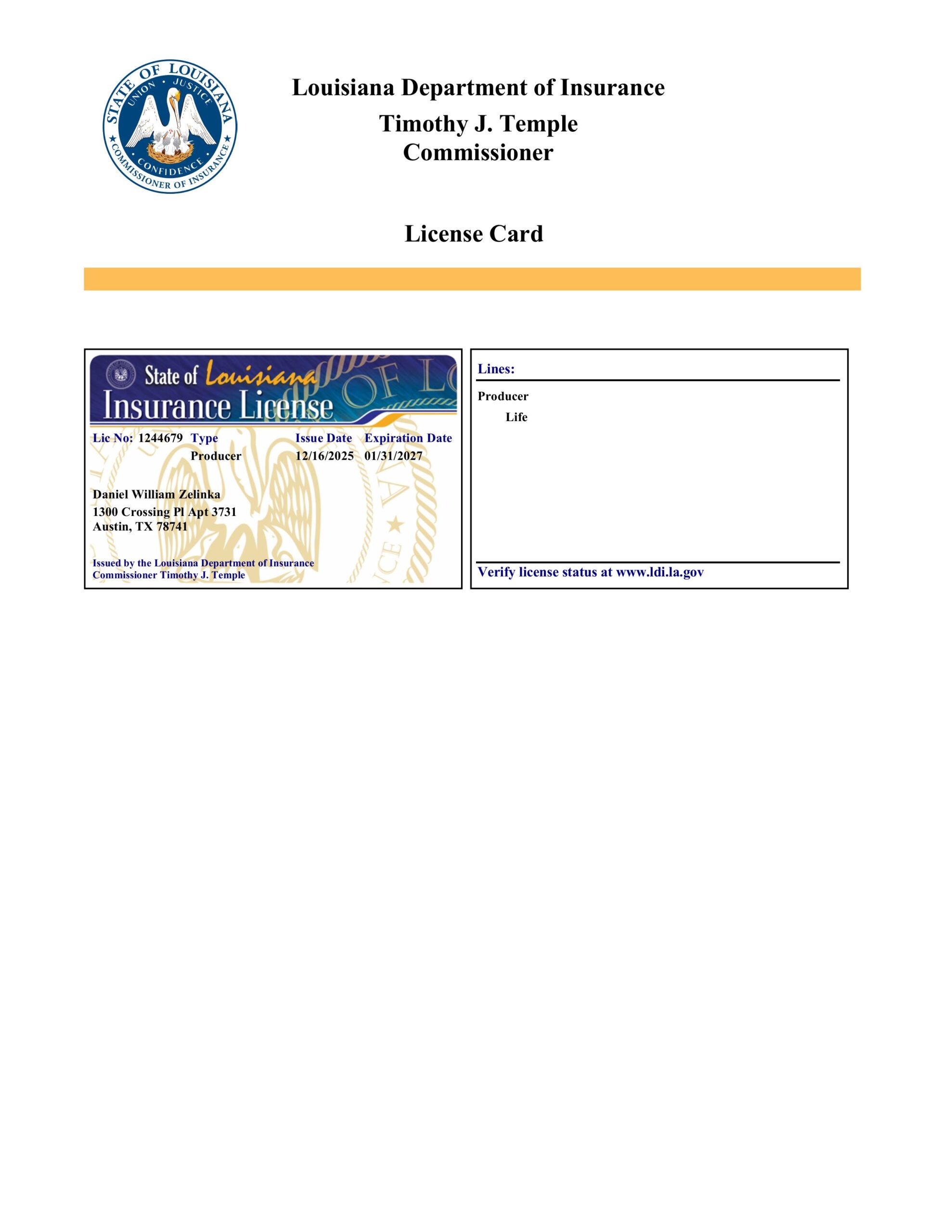 To verify my license with the state insurance department, click here: