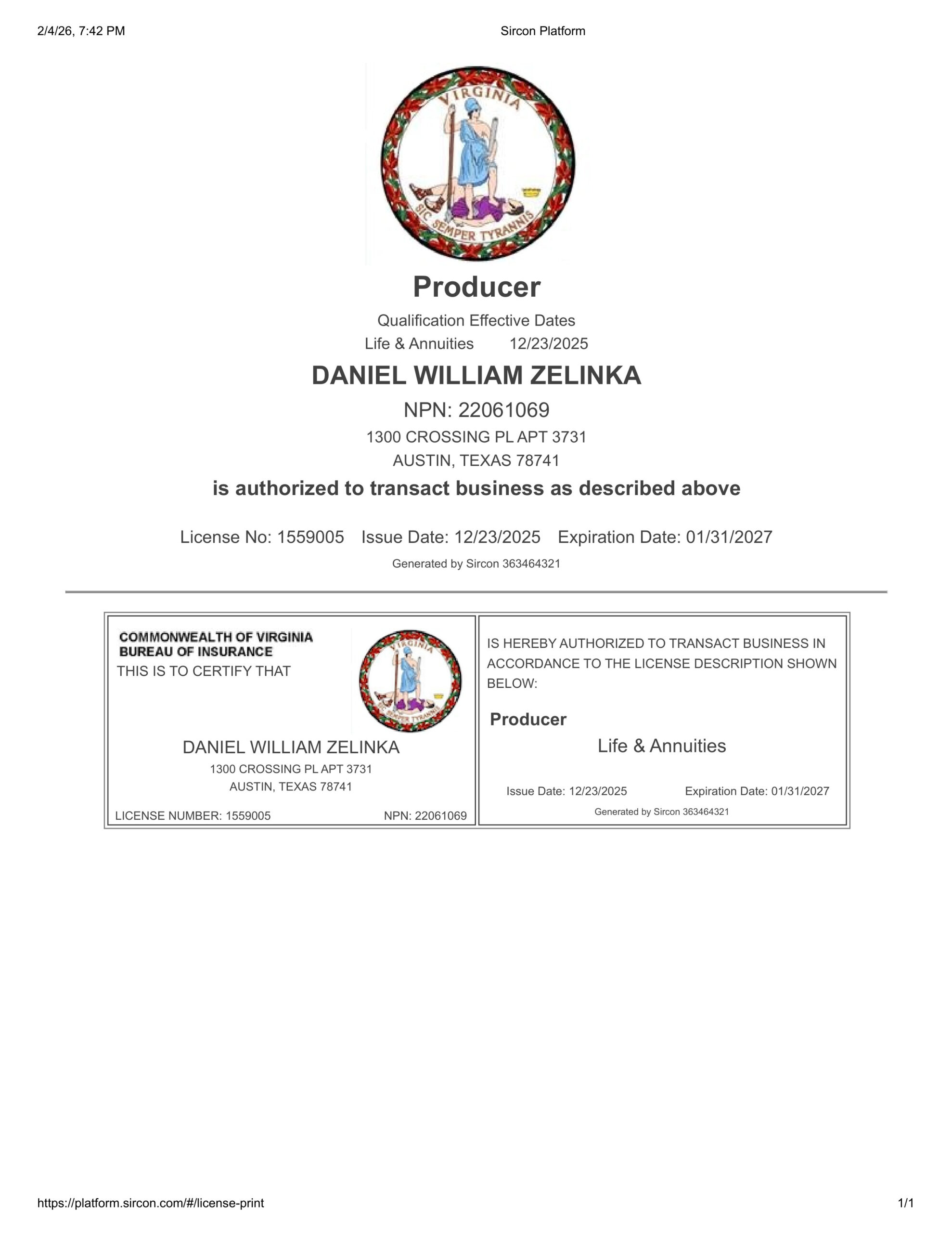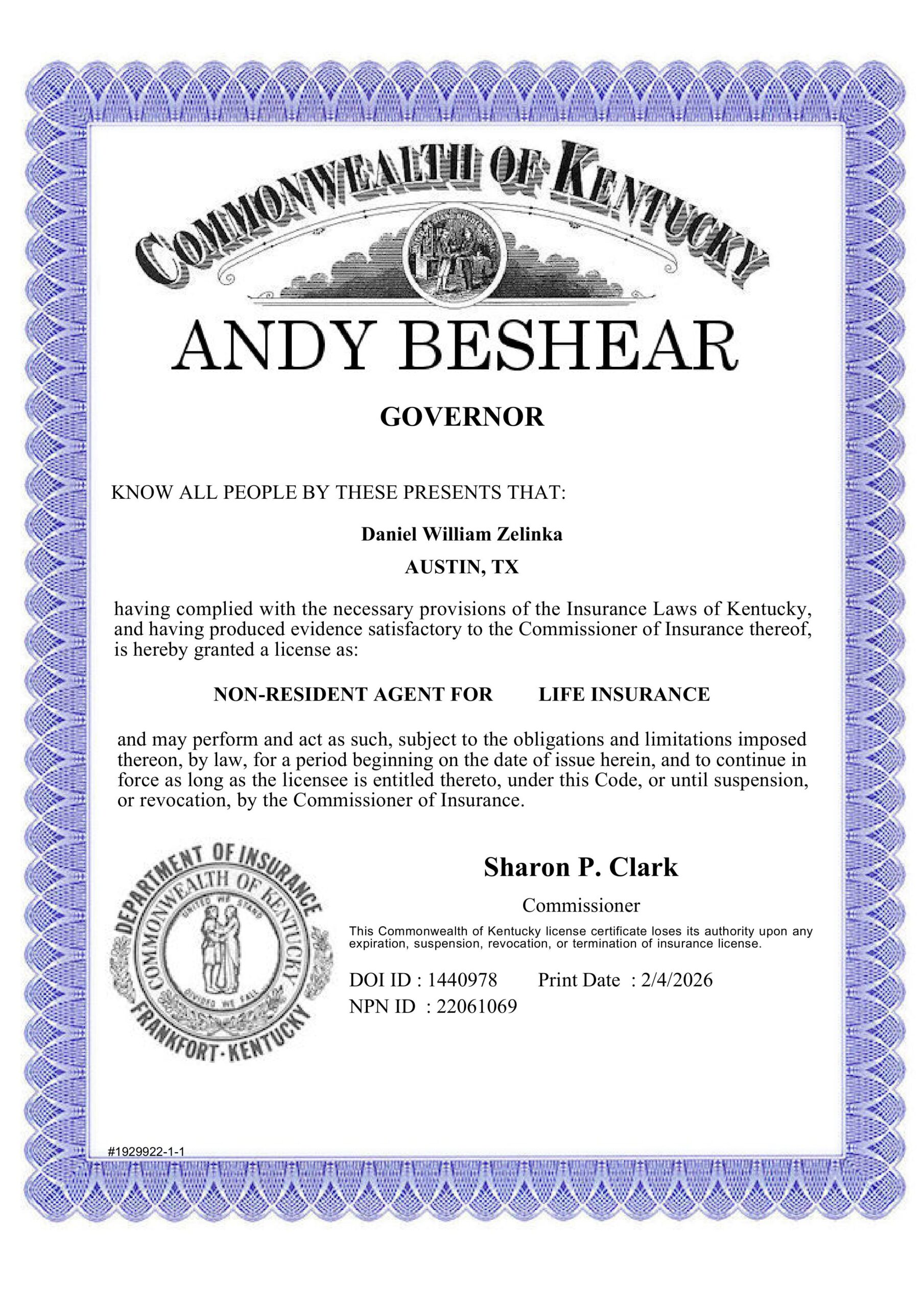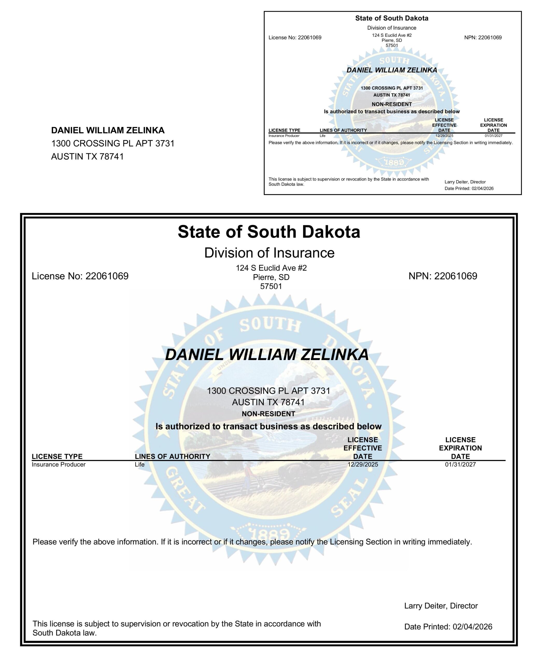 To verify my license with the state insurance department, click here: