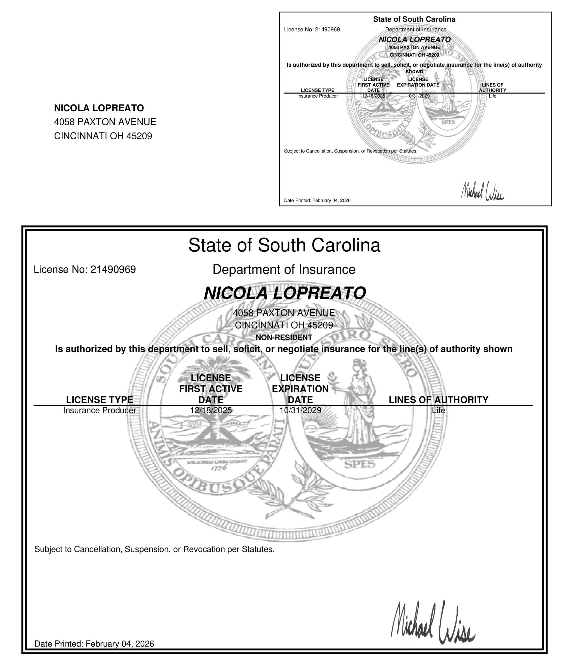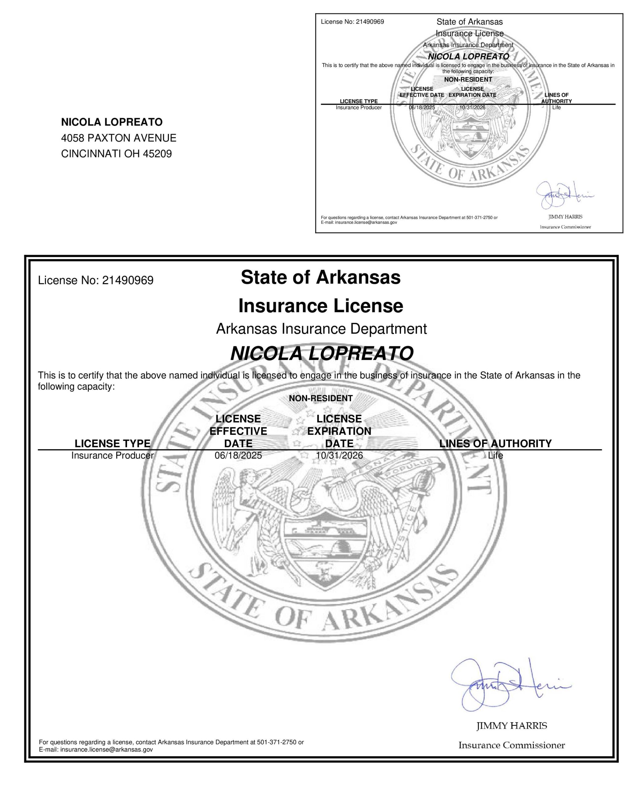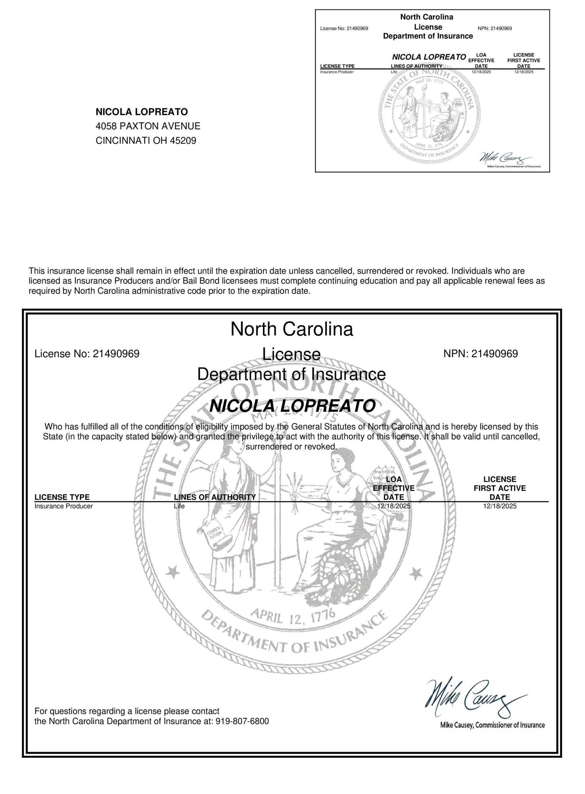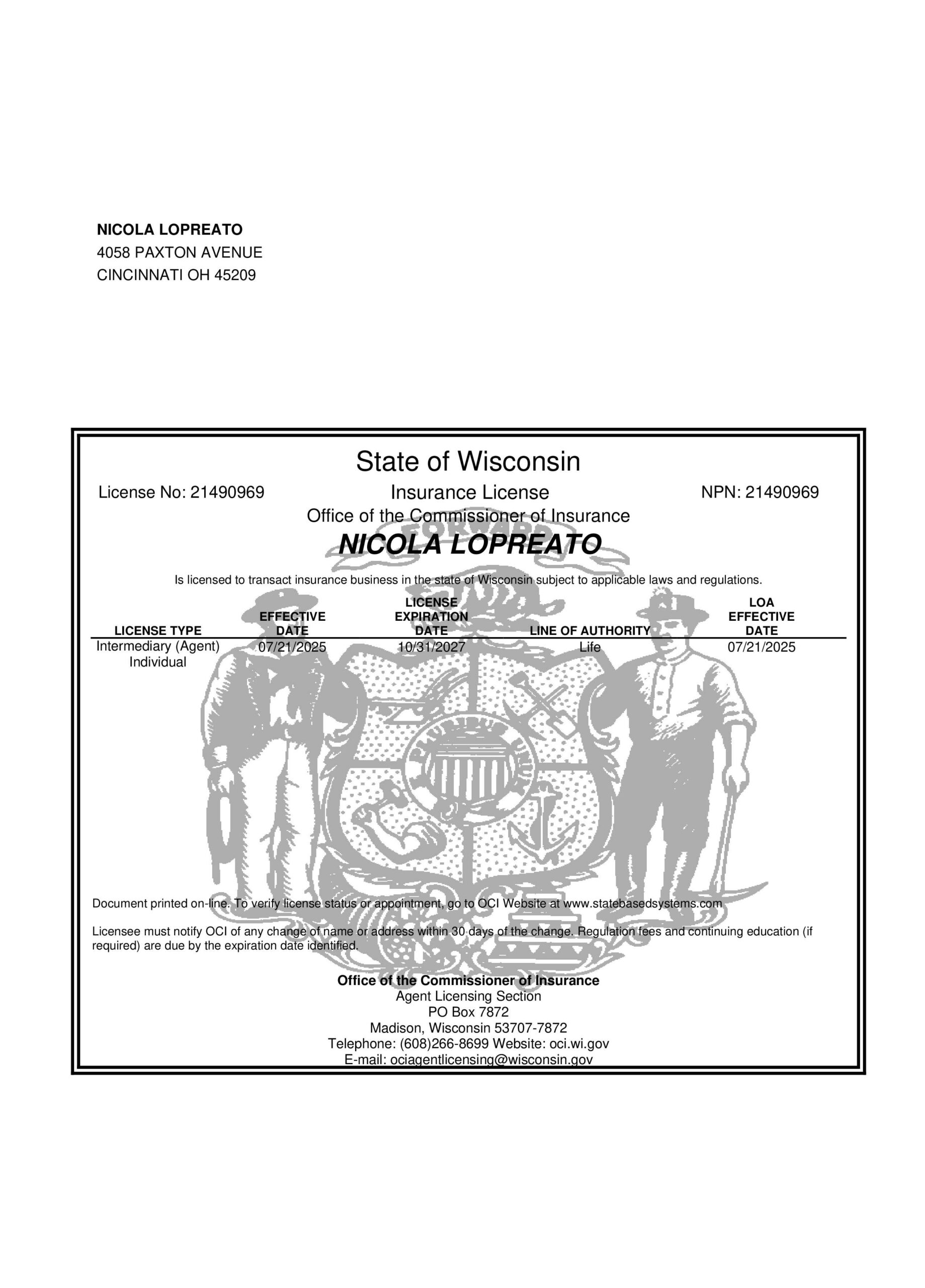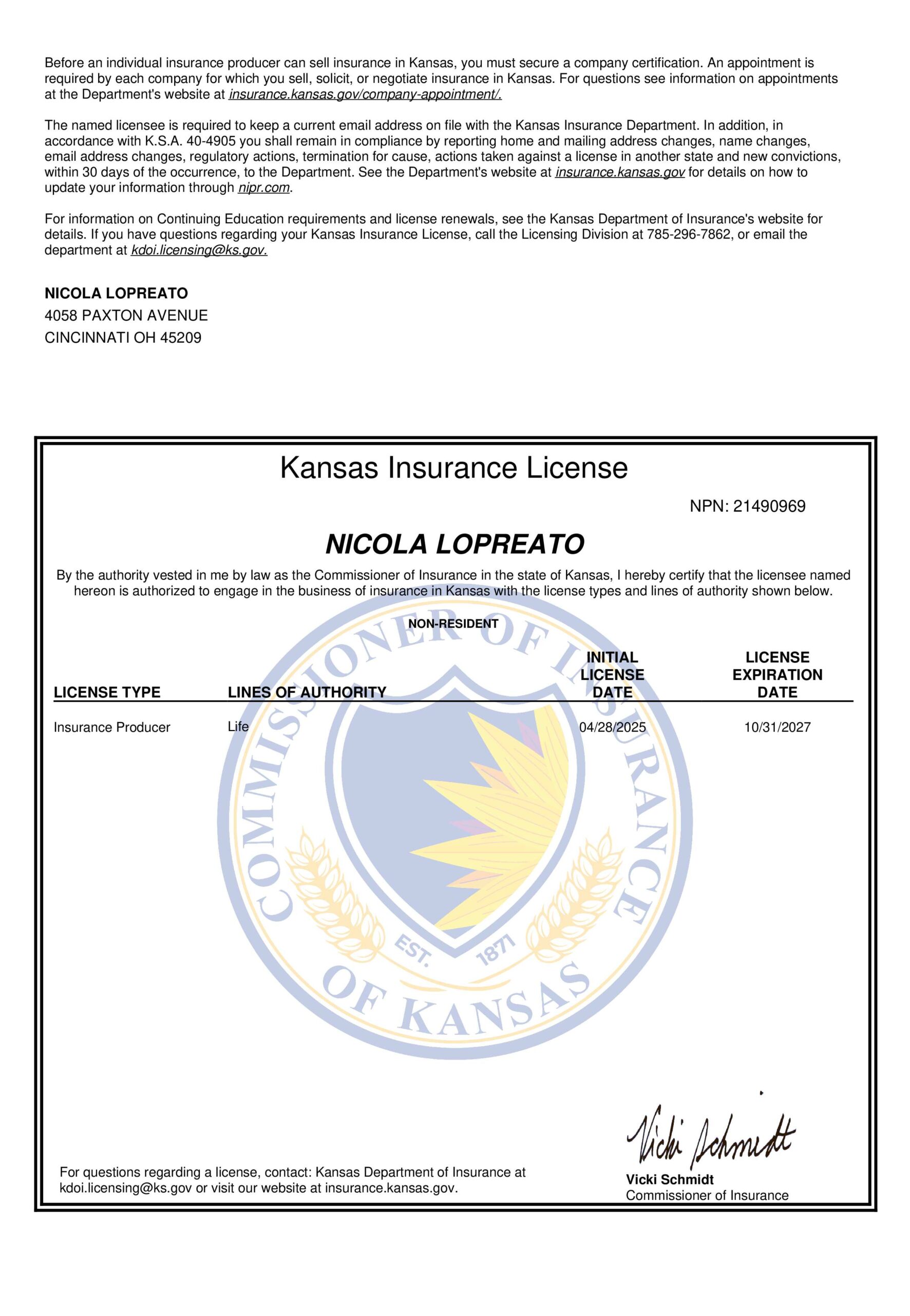 Find your state and verify Nicola Lopreato with a picture of their license and a link directly to your state specific Department of Insurance.